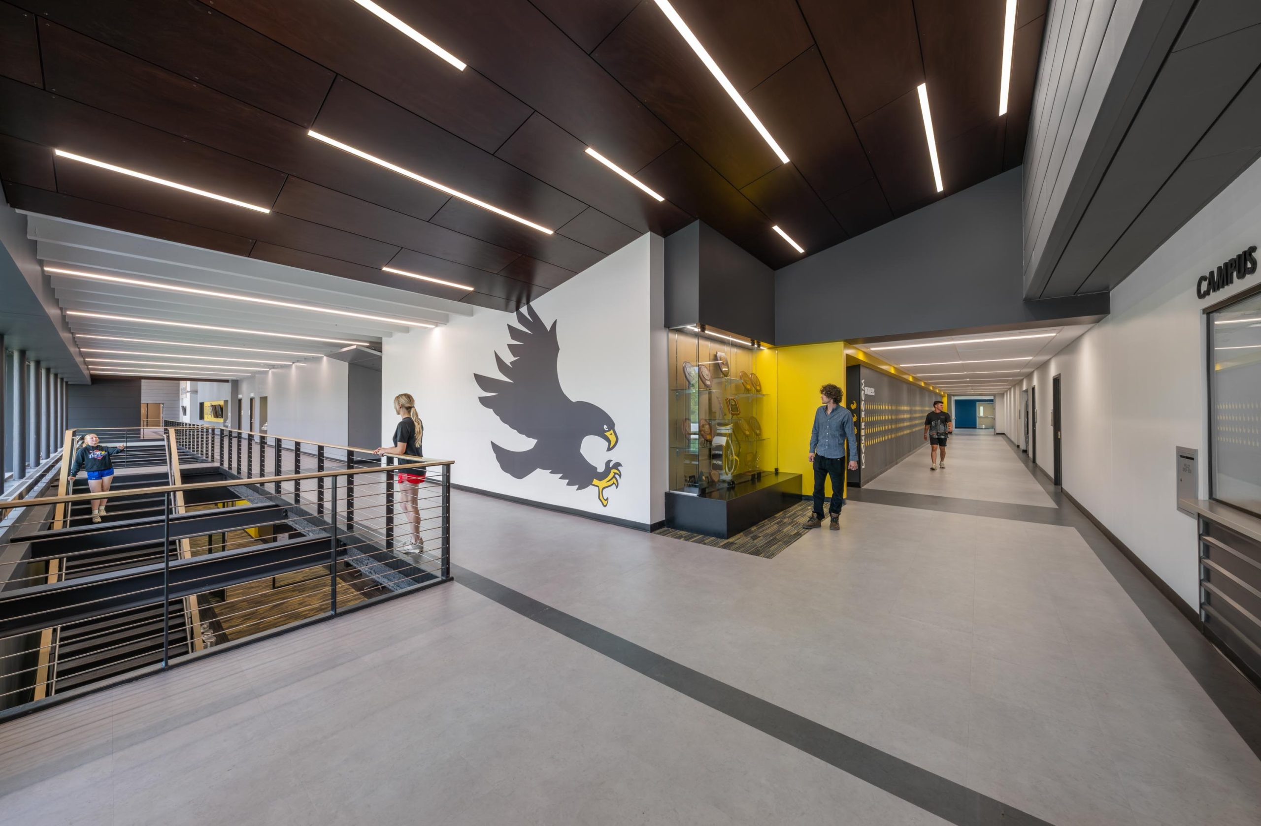 Home to Black Hawk College basketball and volleyball, the Building 3 Gymnasium seats up to 1,000 fans in a vibrant game-day atmosphere. The facility includes six basketball hoops, two scoreboards and acoustical baffling for improved sound quality. Live streaming and a full sound system enhance the experience for both in-person and remote spectators. Convenient features include adjacent locker rooms for home teams, a dedicated officials room and a concession stand for guests.