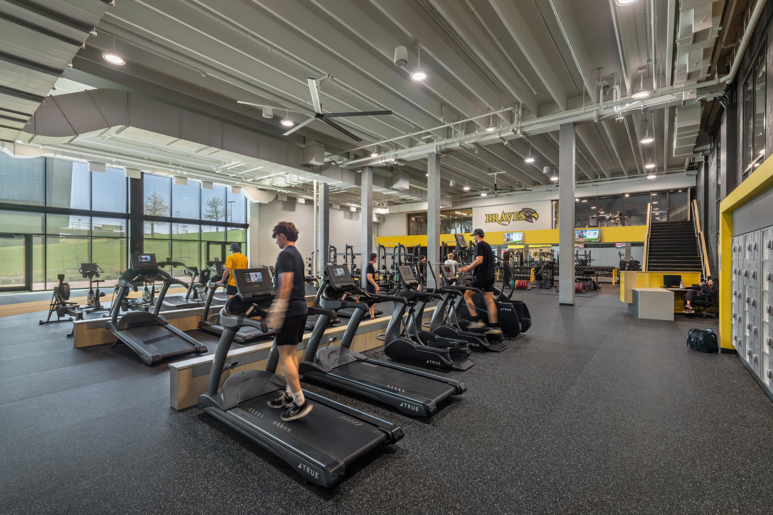 The newly developed Fitness Center at Black Hawk College supports athletes and casual users alike. It features two walking/jogging lanes, a variety of cardio machines including treadmills, ellipticals, bikes and rowers, plus a stair climber for high-intensity training. Users can access both a plate-loaded free weight area and selectorized strength equipment for full-body workouts. Vending machines, lock boxes and 24/7 security camera monitoring add comfort and peace of mind for all users.