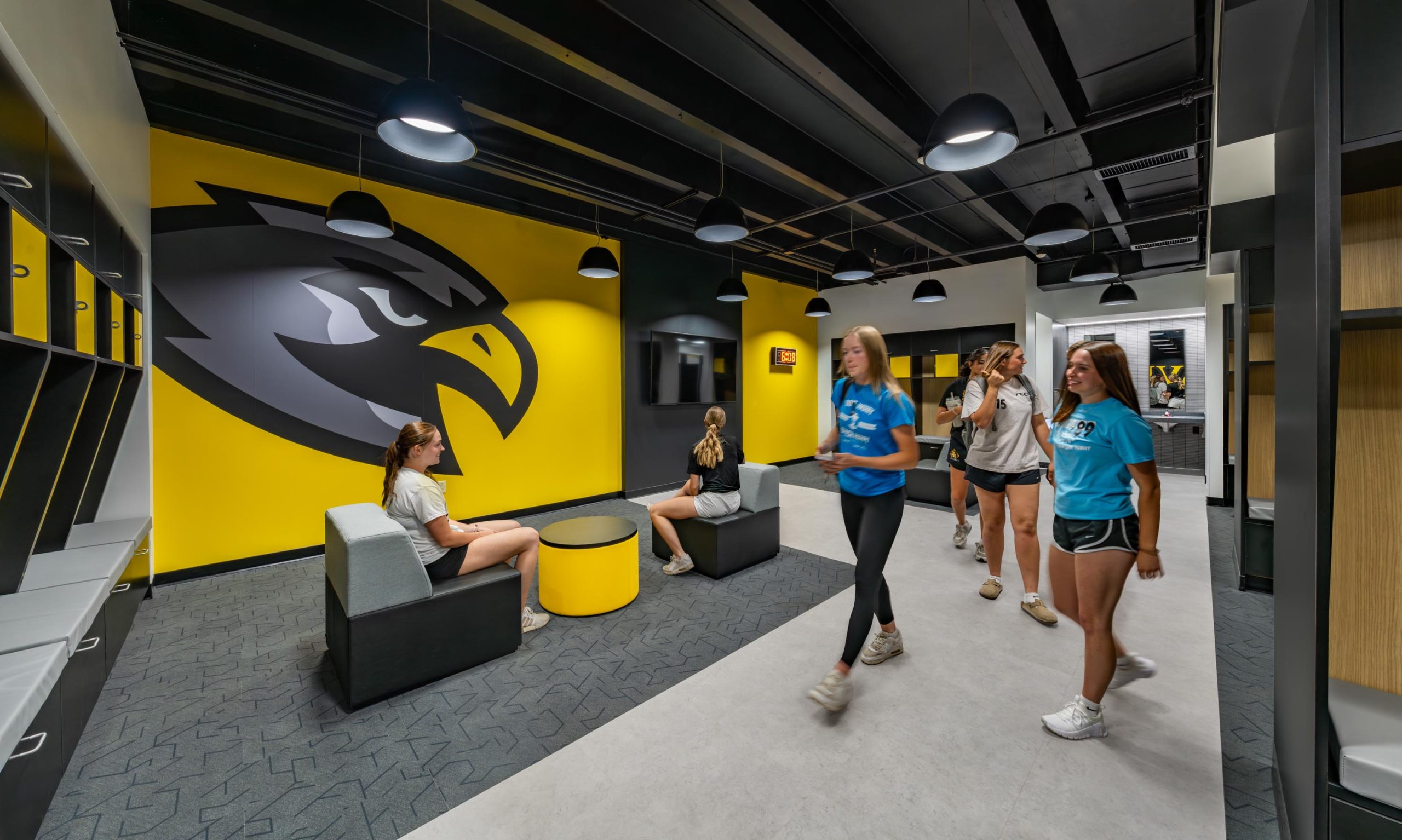 Our Volleyball, Men’s Basketball and Women’s Basketball teams prepare for their games in comfortable and modern locker rooms.
